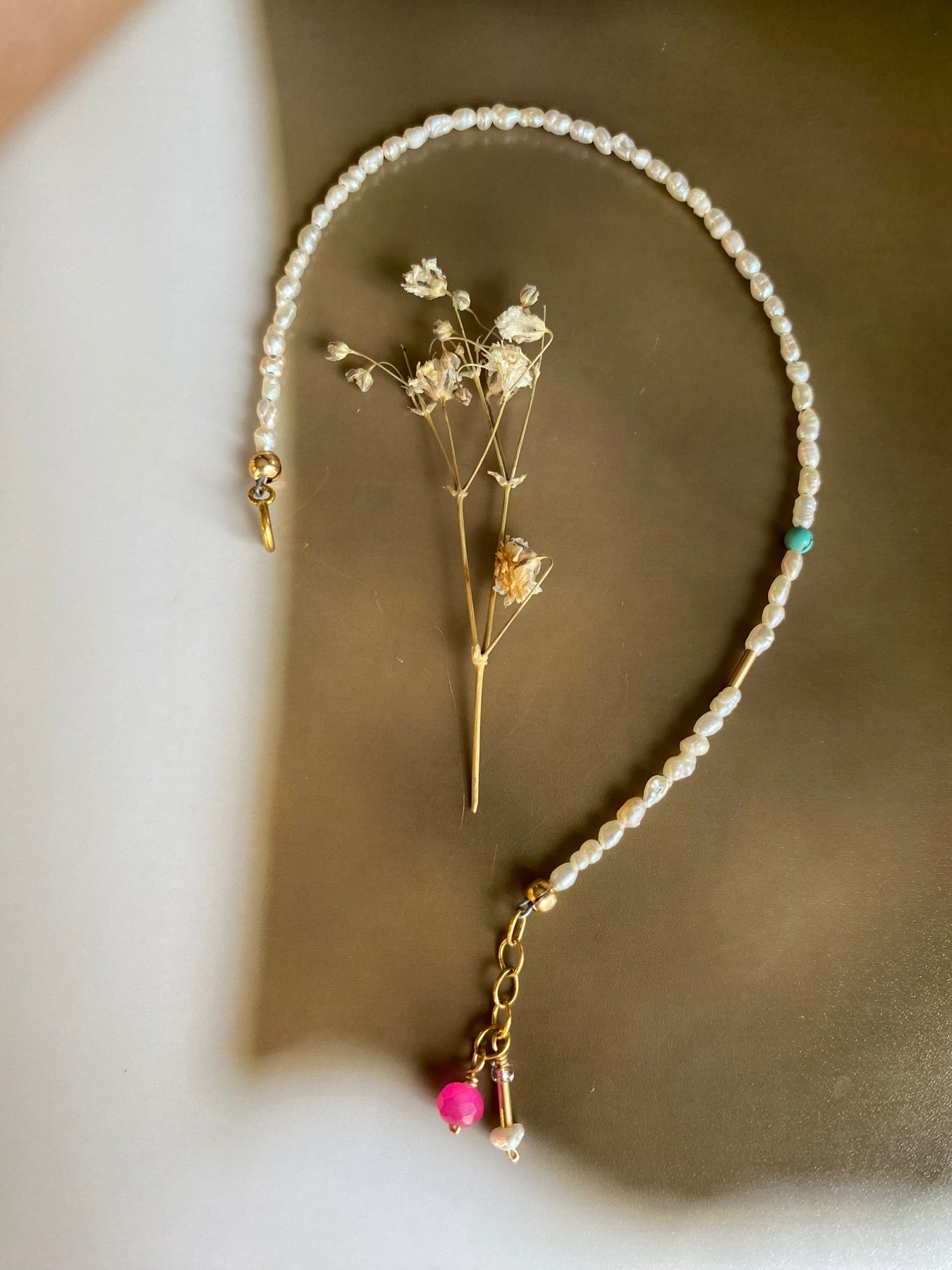 Sweep pearls with a pop of pink - a playful whisper of charm and colour.