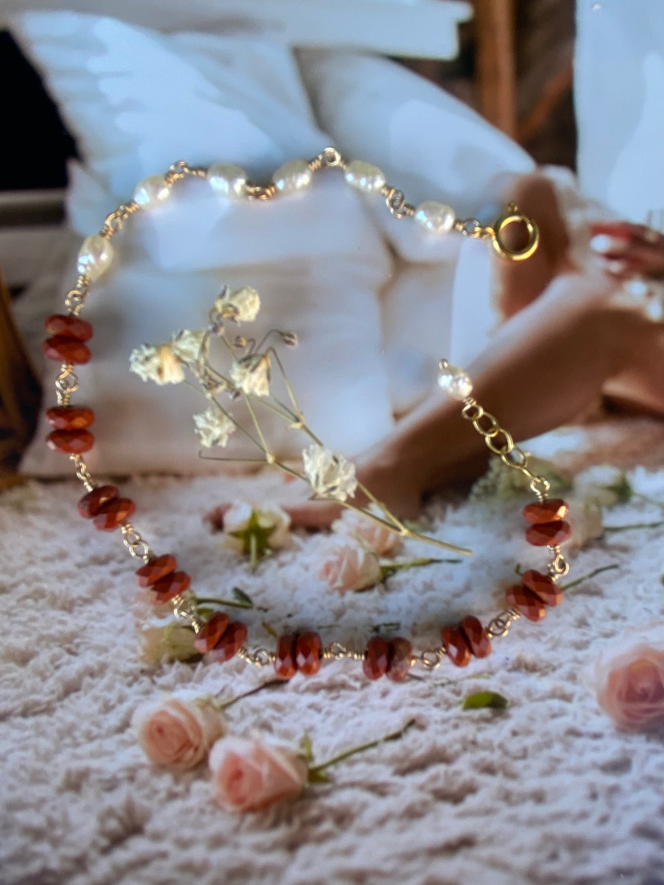 Carnelian Ember Pearl Bracelet