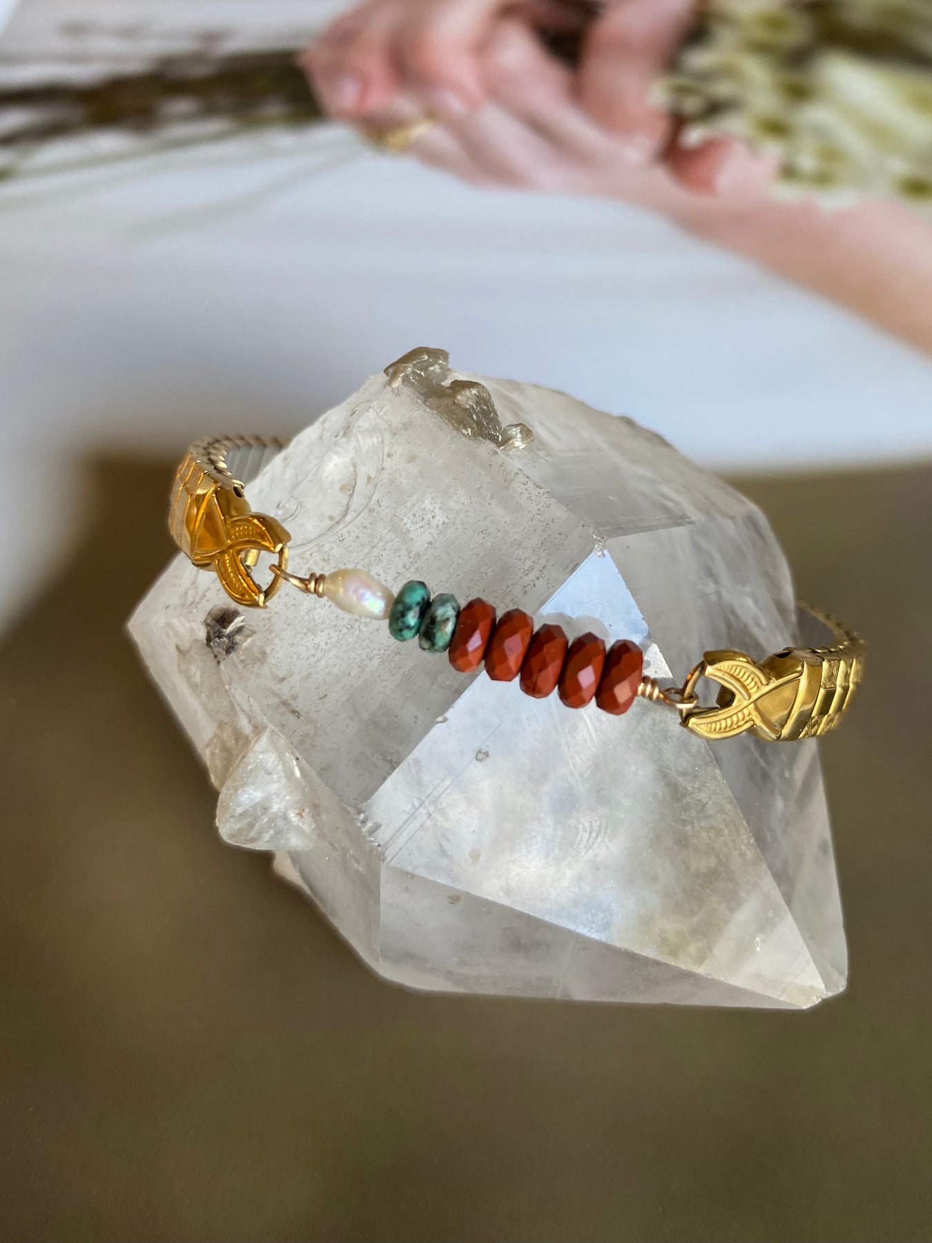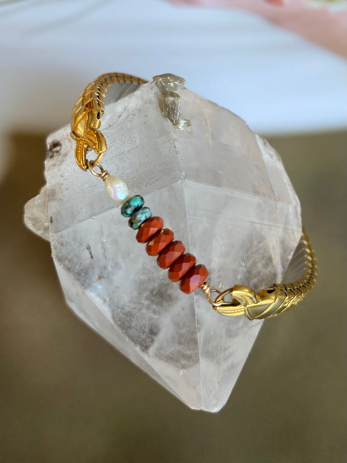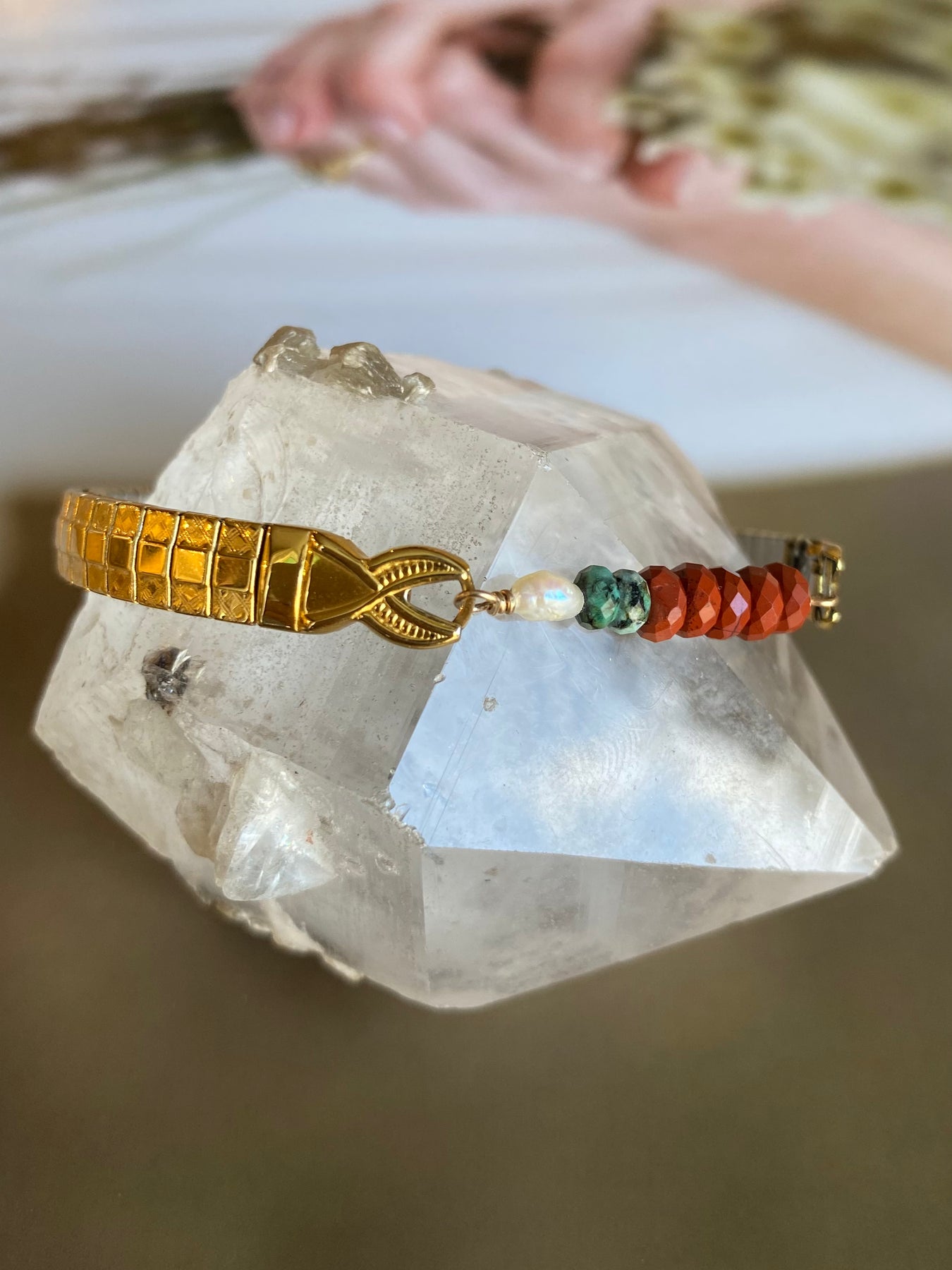 A golden glow of carnelian and turquoise capturing warmth, grounding and wanderlust in one perfect stack.