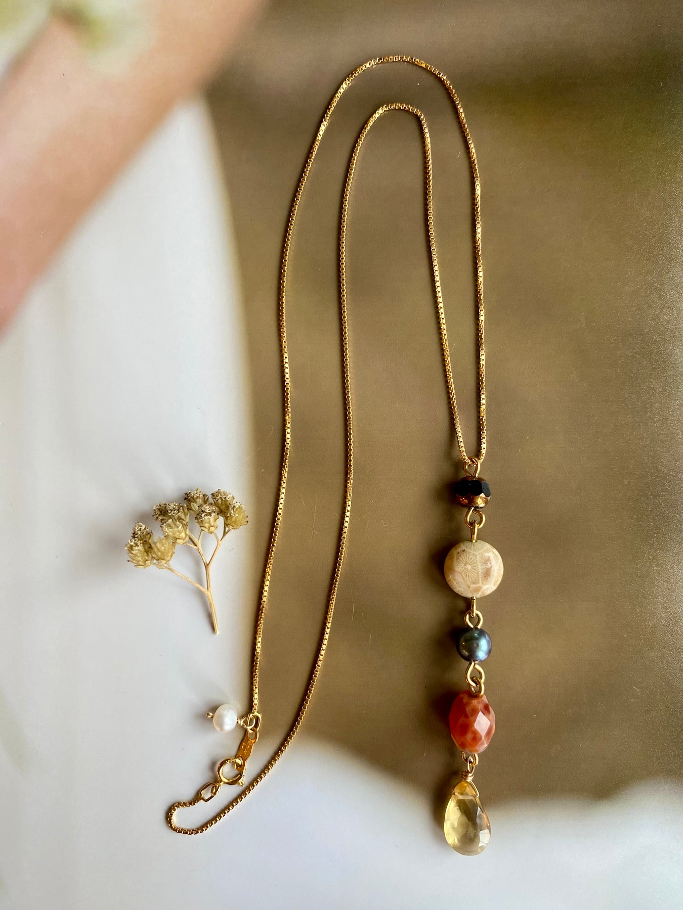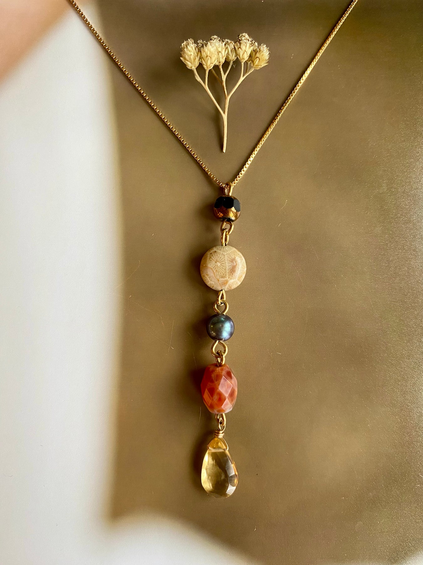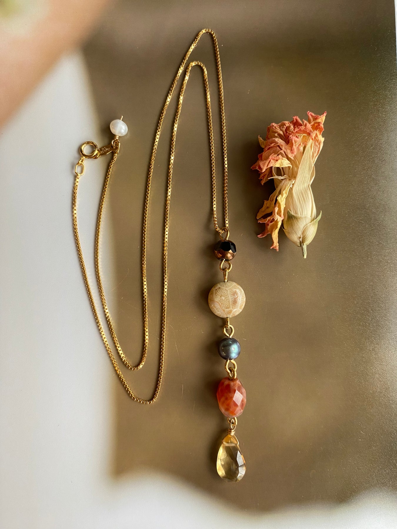 A stunning necklace with all the warmth of the earth and golden links - suitable for every day wear.