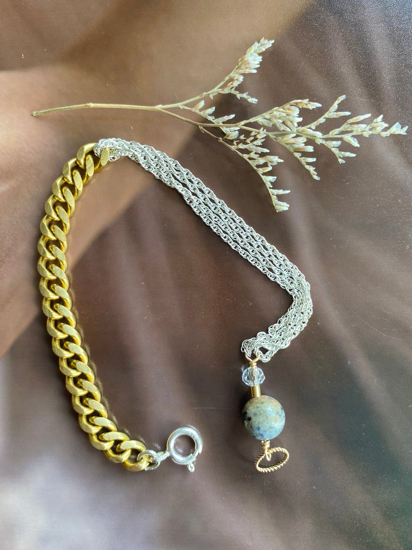 A delicate dance of bold chain and grounded stone - quiet elegance with soul.