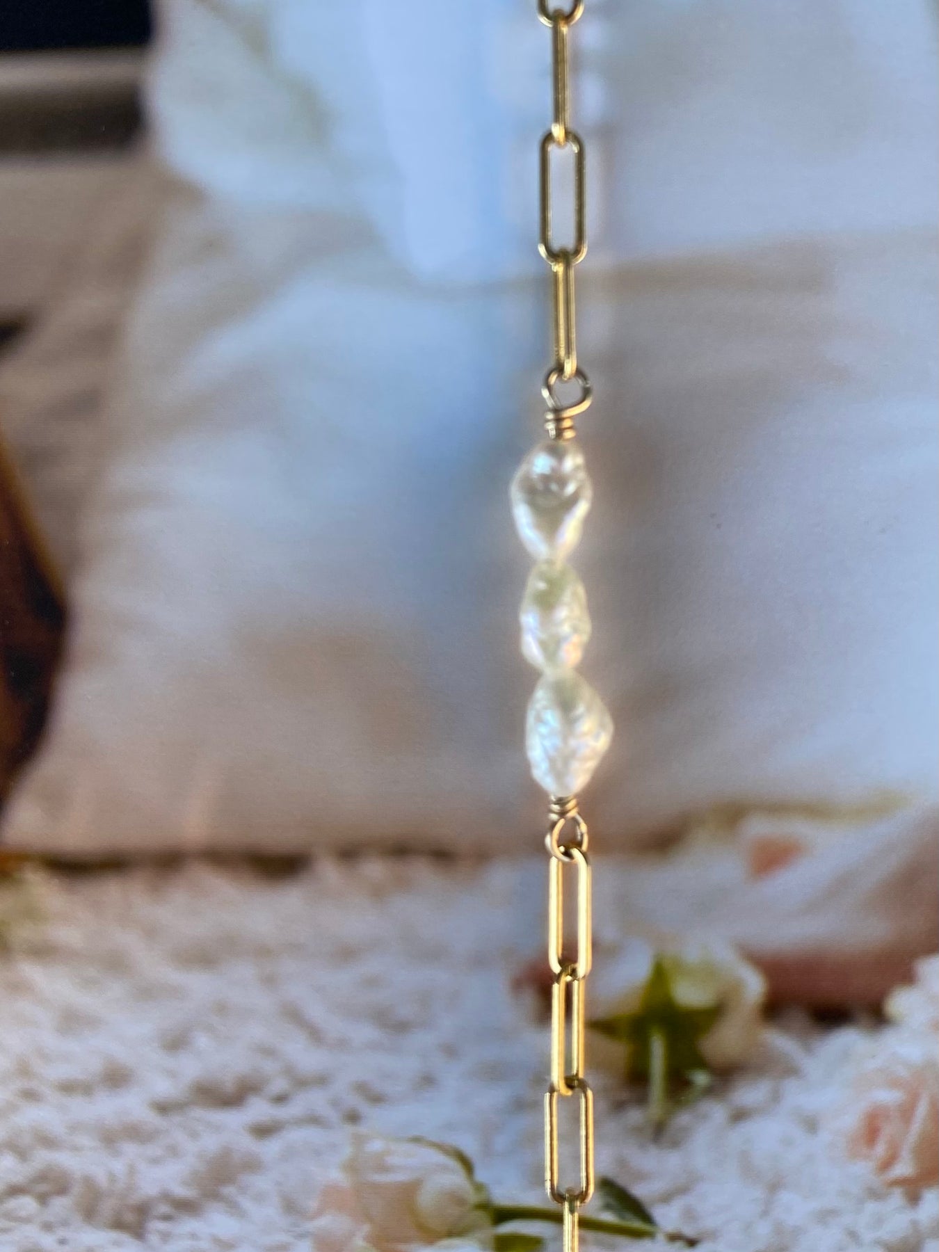 A fluid mix of softly linked gold and luminous pearls designed to move beautifully with you.
