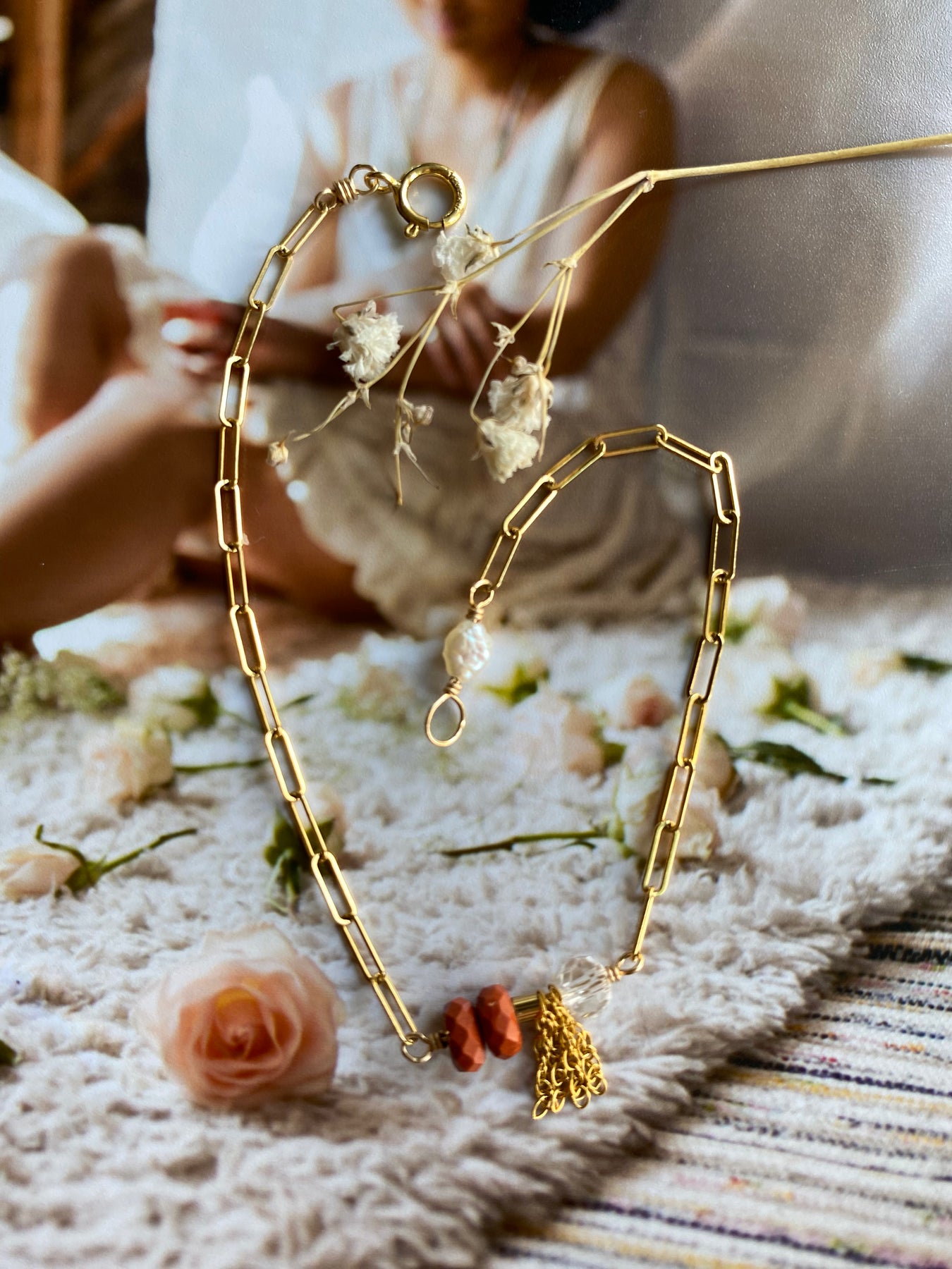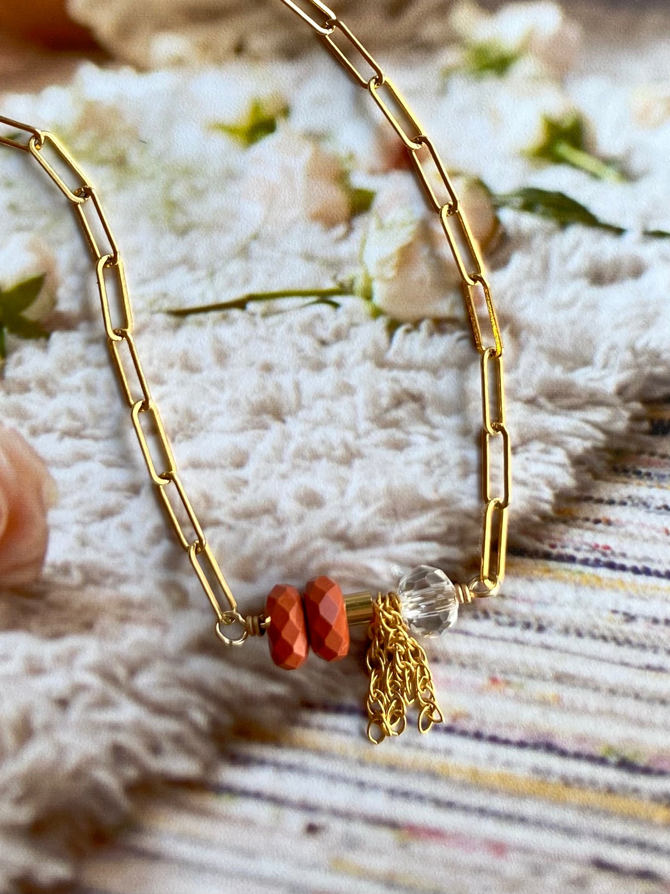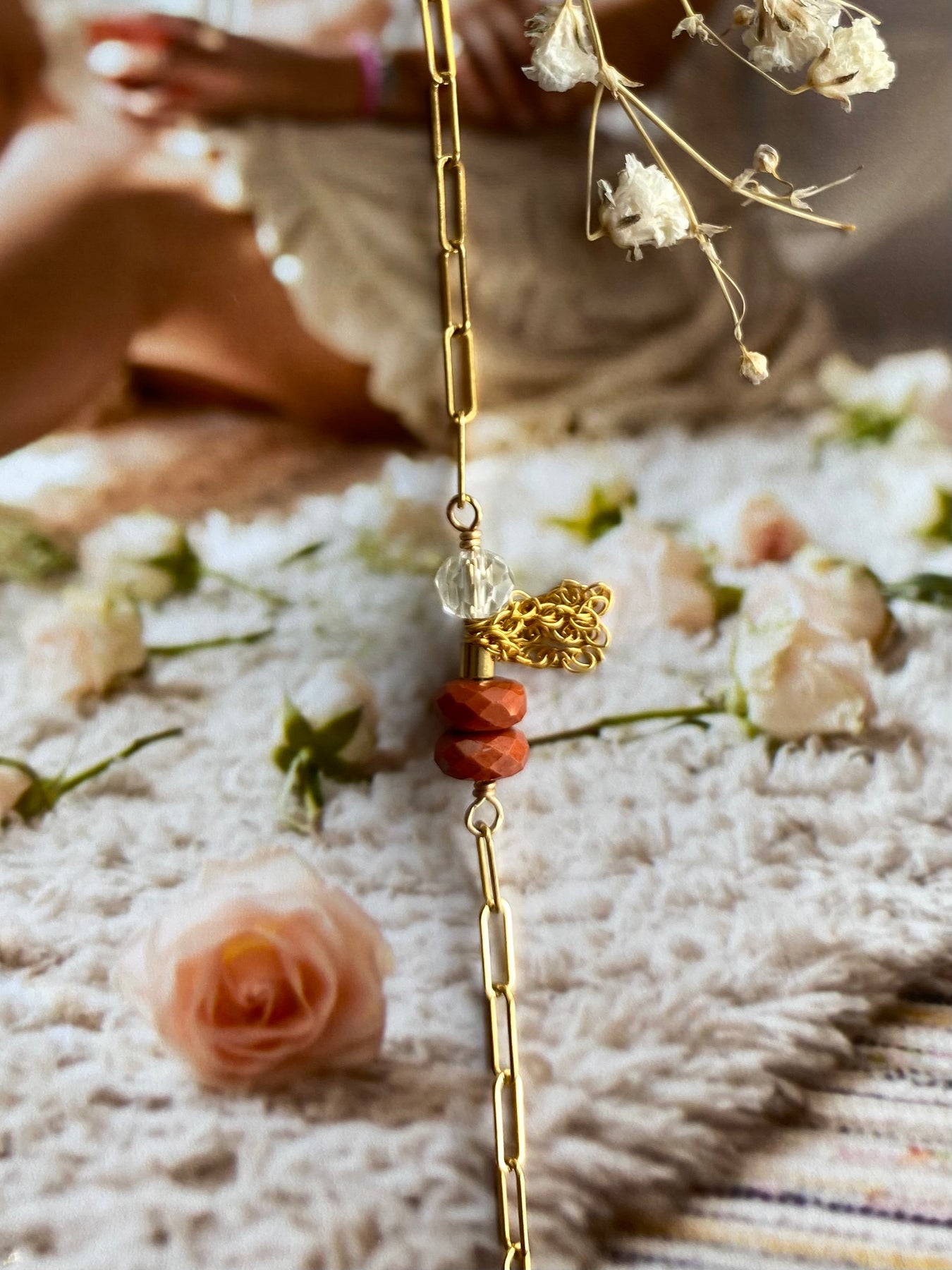 A warm pop of carnelian and delicate gold details create a bracelet that feels playful, personal and full of glow.