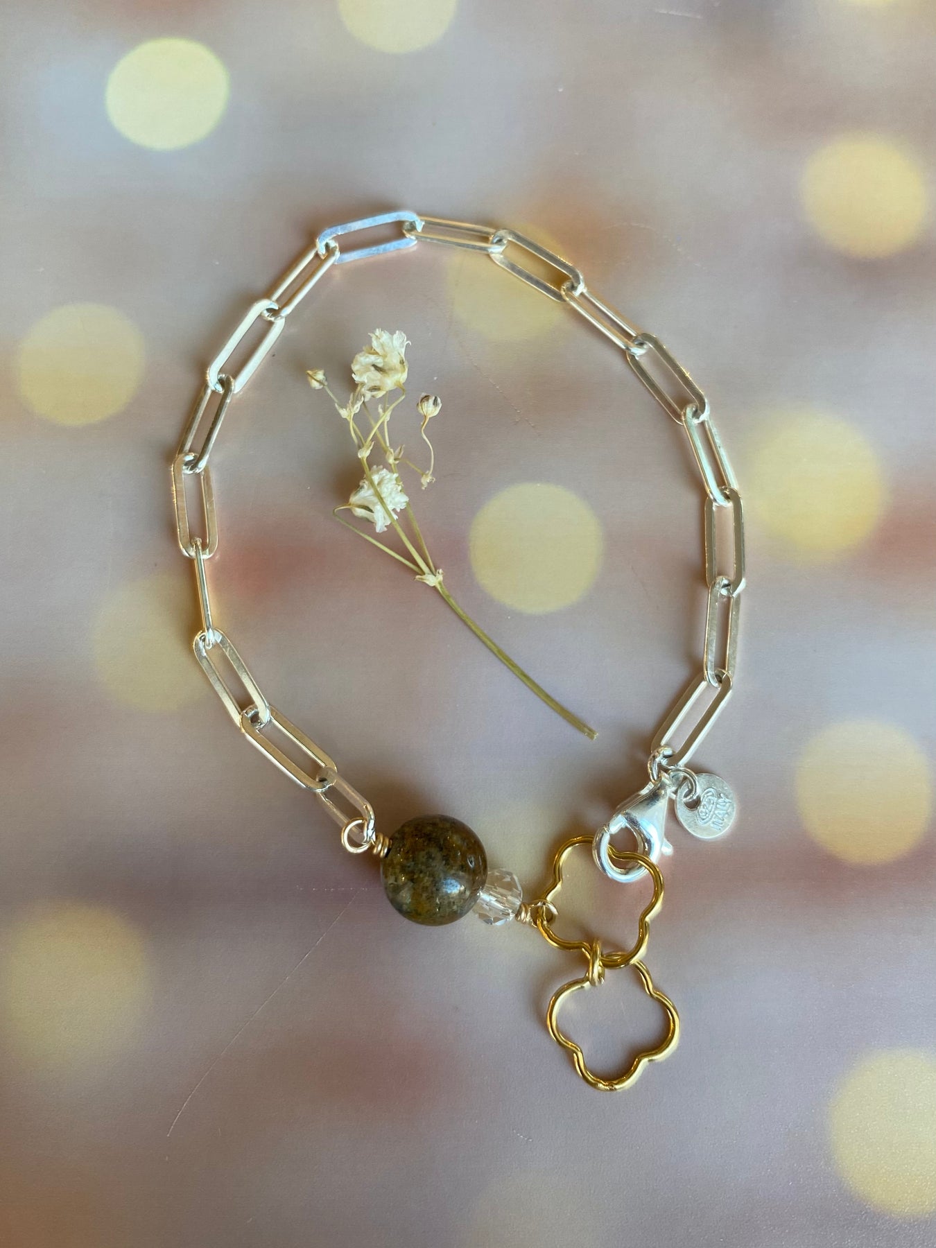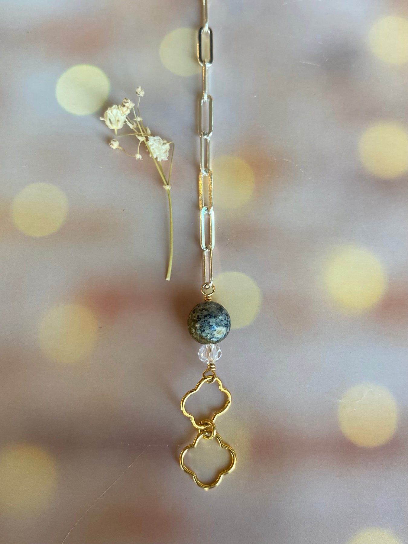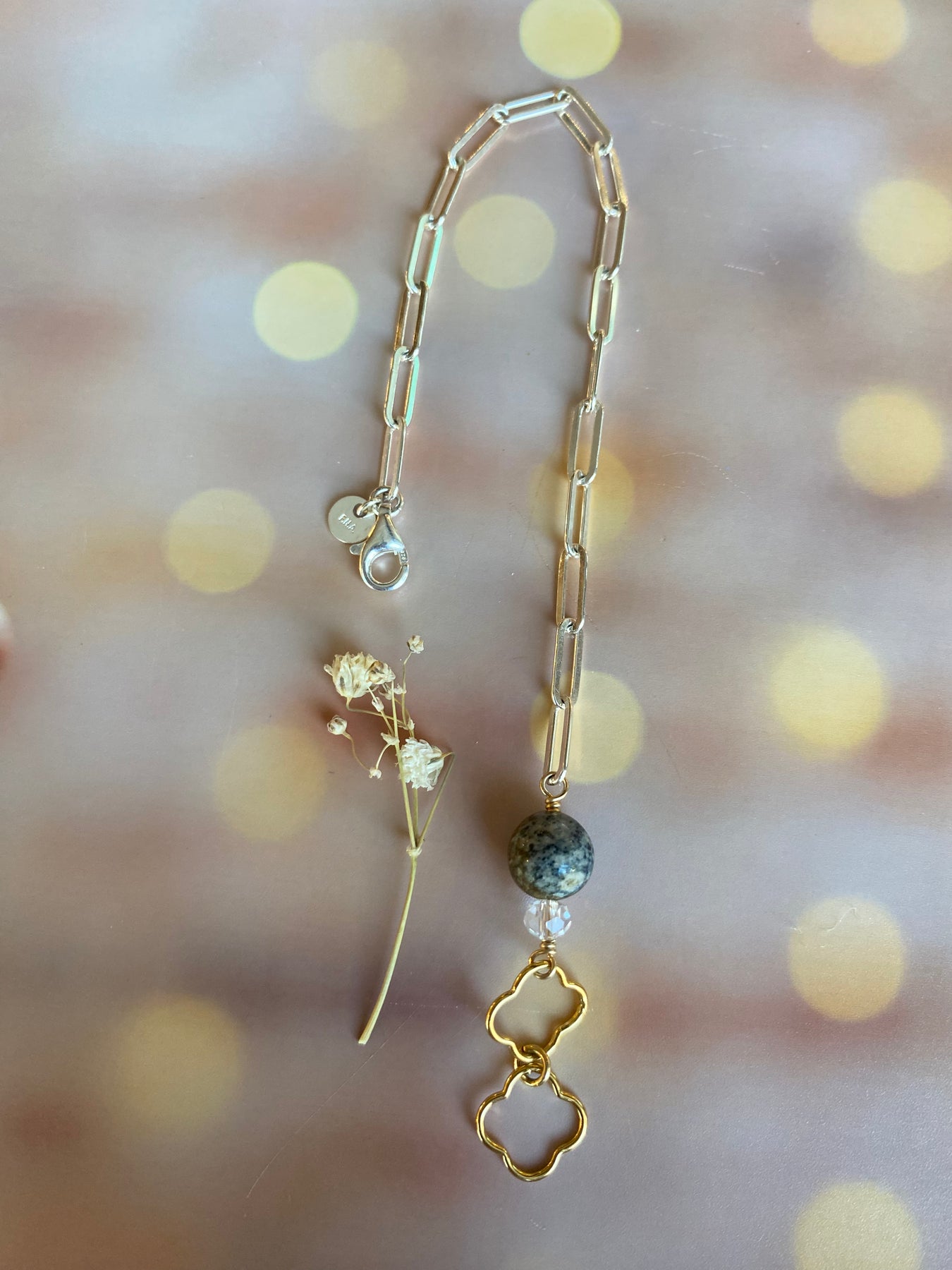 A softly linked paperclip chain finished with an earthy sparkle and a touch of golden charm - effortless and quietly special.
