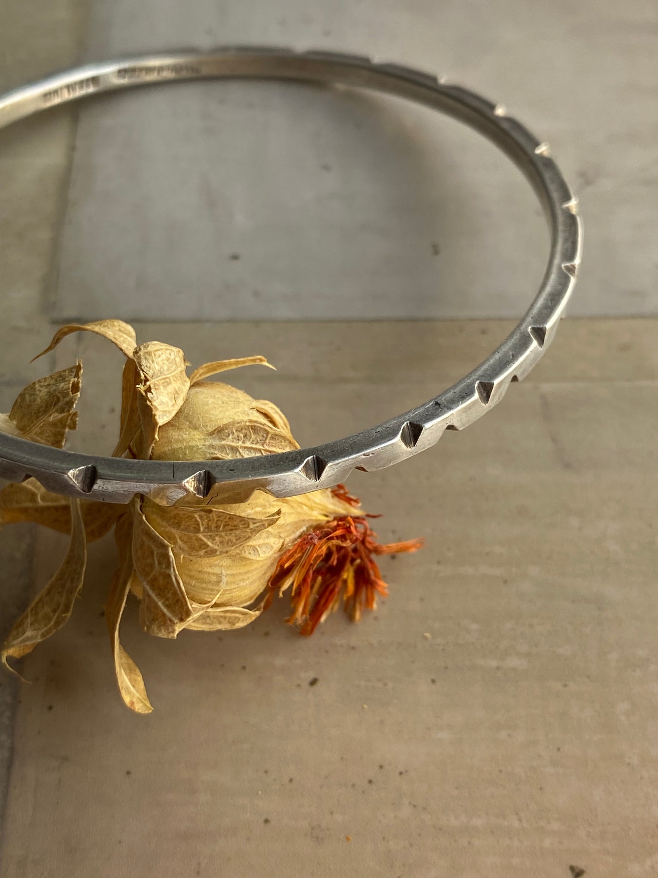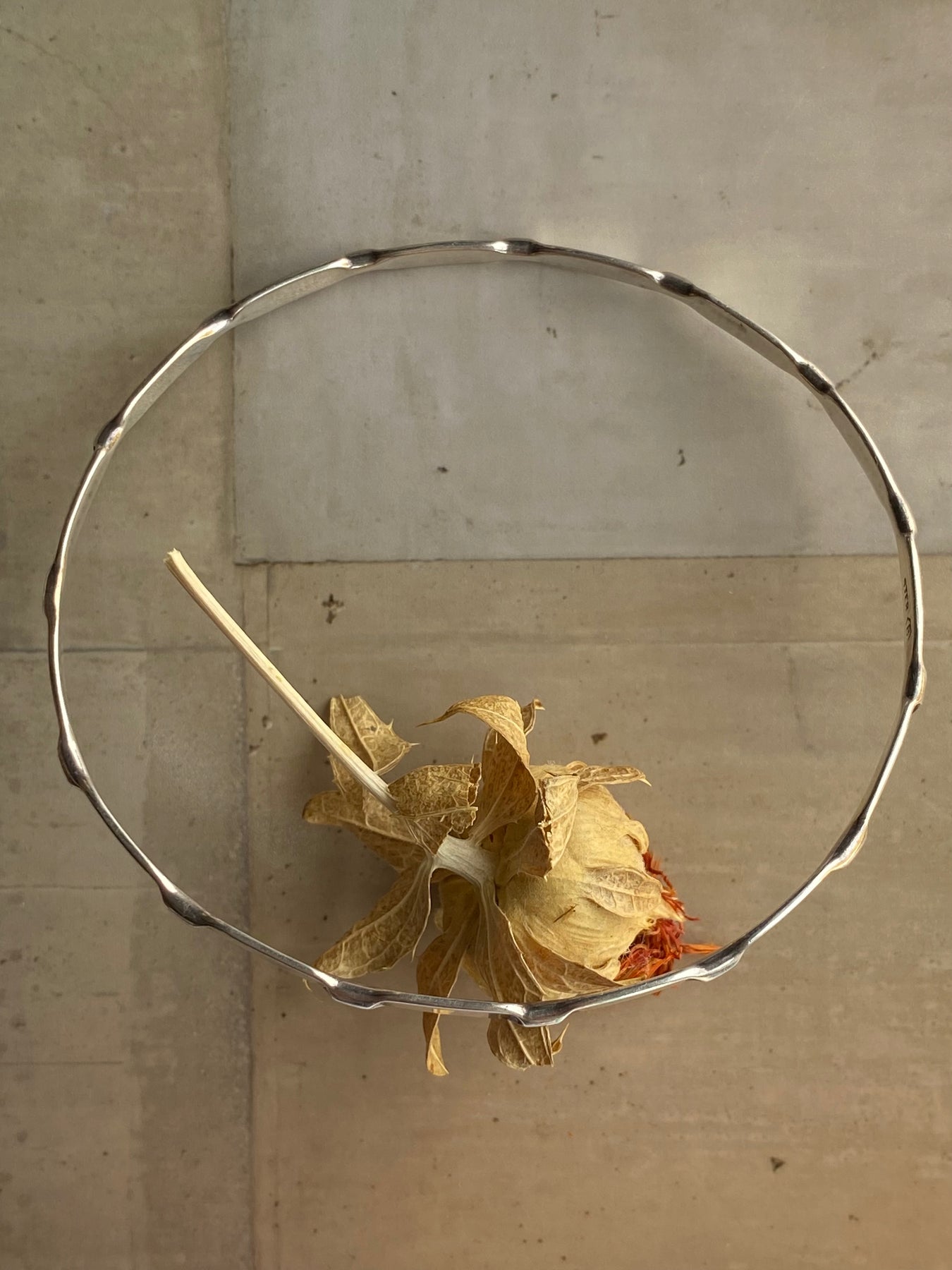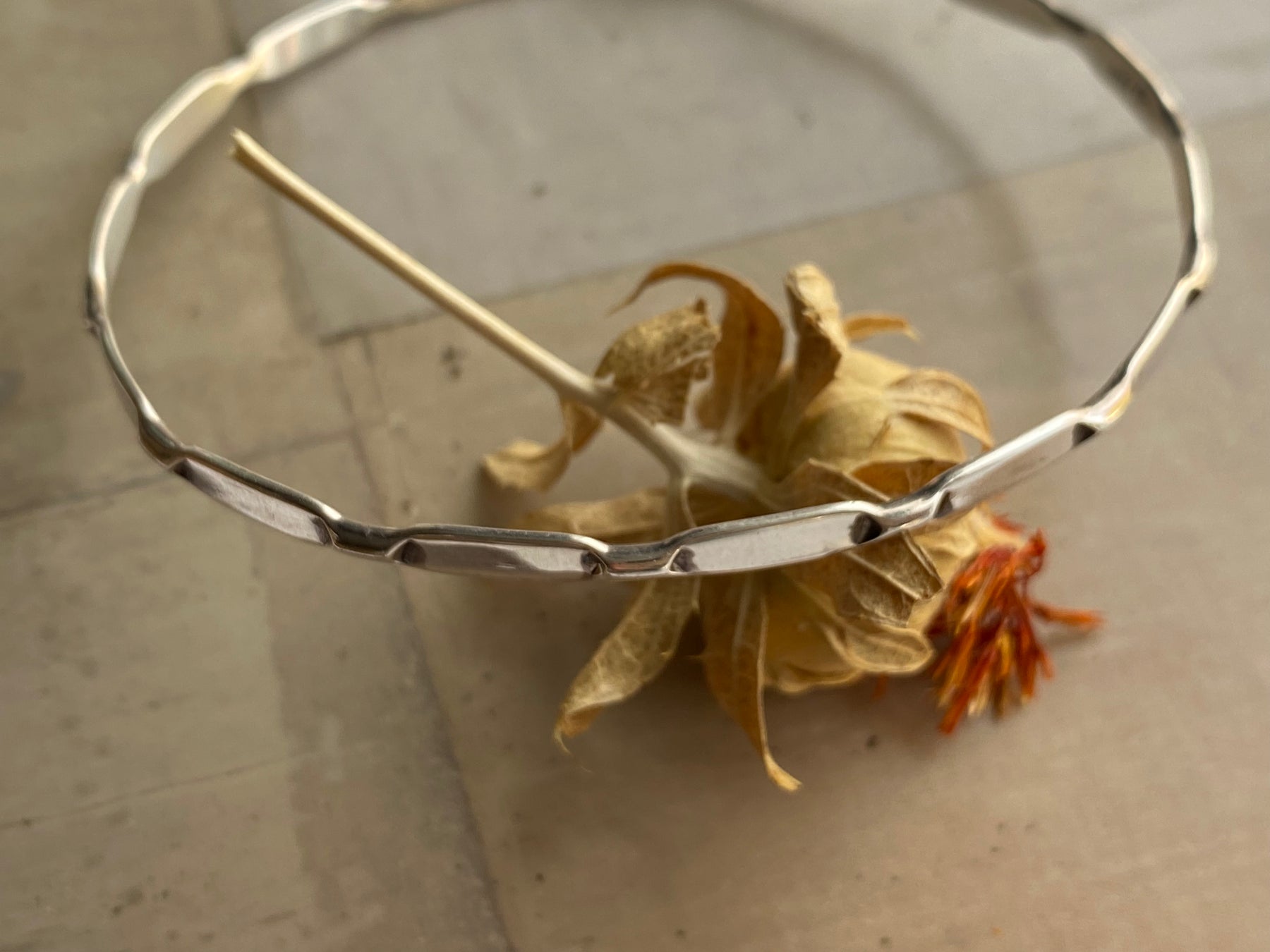 A fluid hand formed bangle with gentle movement and quiet texture that feels alive on the wrist.
