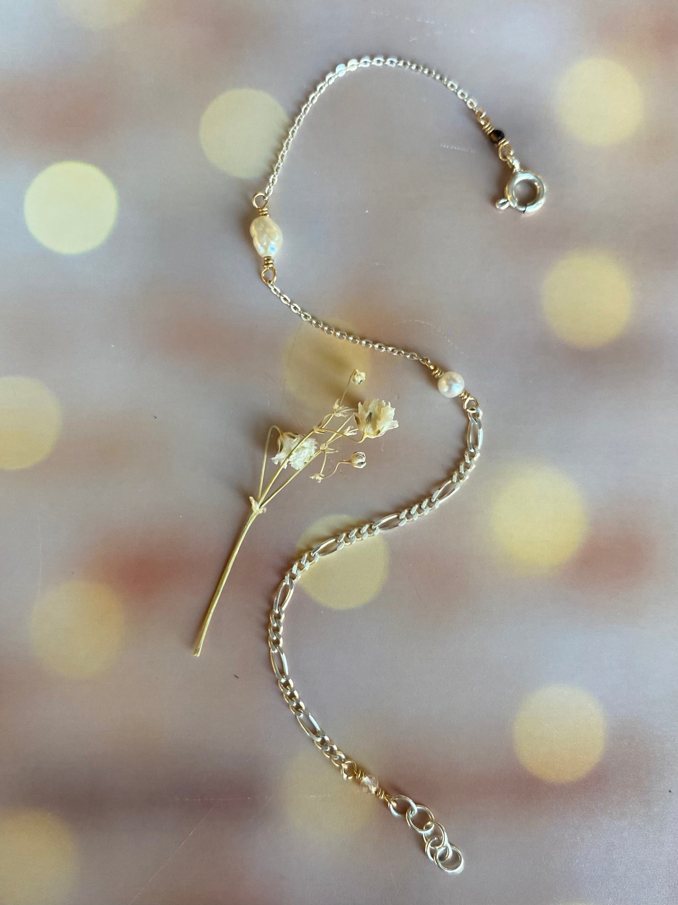 Soft pearls and silver links come together in a subtle reminder of moments meant to be held close.