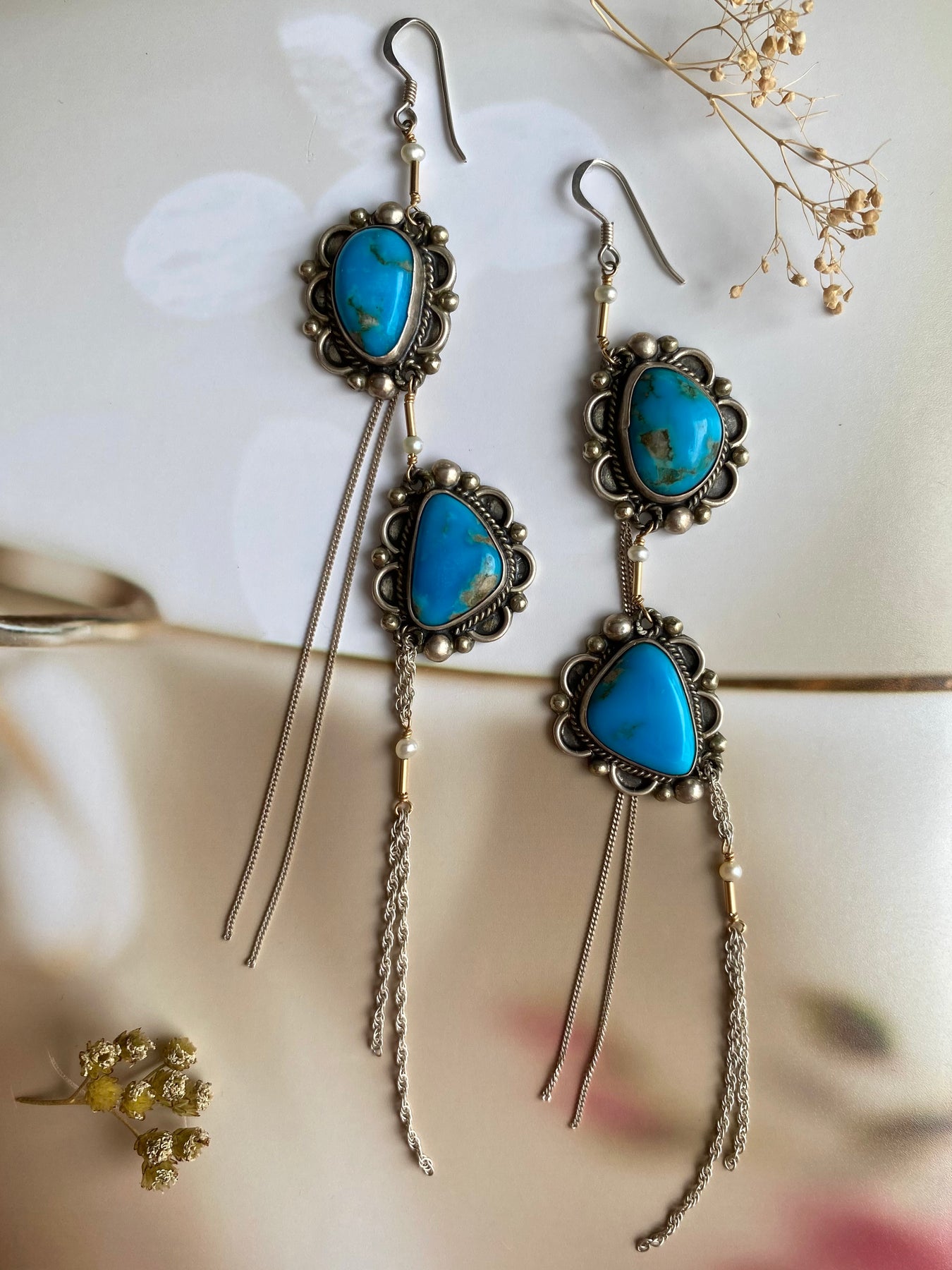 Please note, these stunners are one-of-a-kind but please reach out to us if you would like something similar custom-made. We LOVE making custom pieces! These earrings will require 1 to 2 days to prepare to ship. If you are on a tight timeline please CALL US and we'll see what we can do!