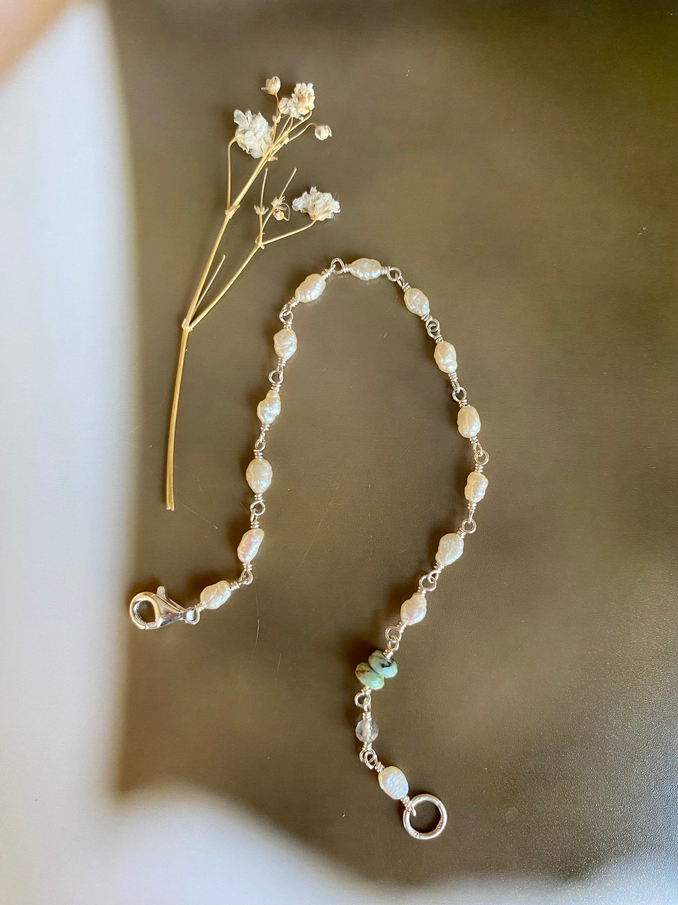 Pearls and mixed stones strung like nature's quiet poetry for your wrist.